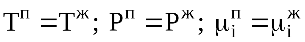 Условия равновесия между двумя фазами могут быть представлены следующим образом: