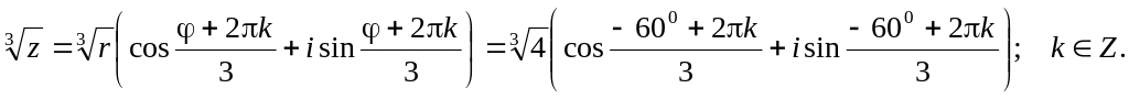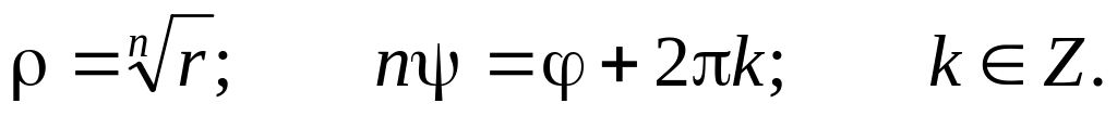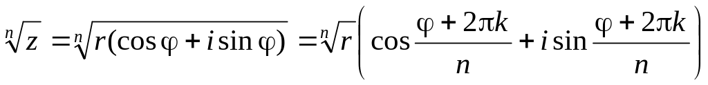 Таким образом, корень n – ой степени из комплексного числа имеет n различных значений.