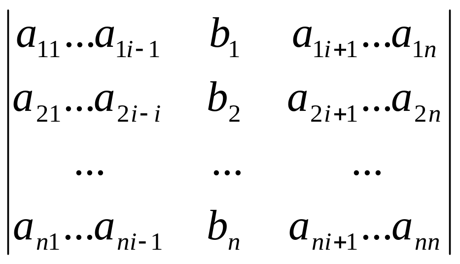 = det A, а i – определитель матрицы, получаемой из матрицы системы заменой столбца i столбцом свободных членов bi.