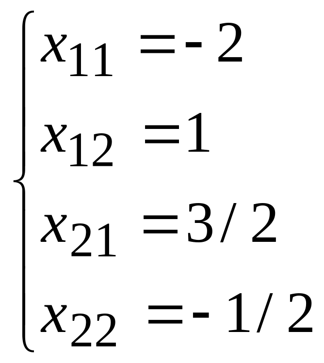 x11= -2; x12= 1; x21= 3/2; x22= -1/2