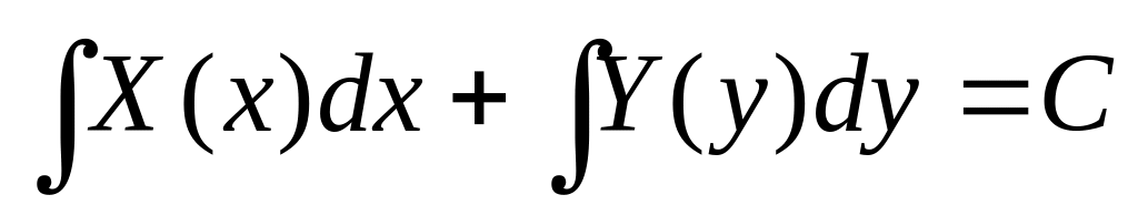 После нахождения соответствующих интегралов получается общее решение дифференциального уравнения с разделяющимися переменными.