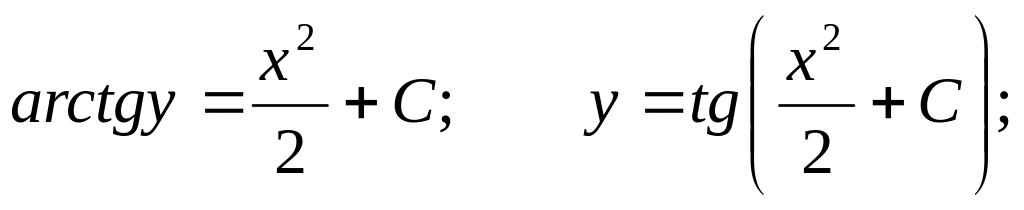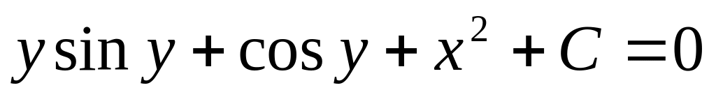 Получили общий интеграл данного дифференциального уравнения. Если из этого соотношения выразить искомую функцию у, то получим общее решение.