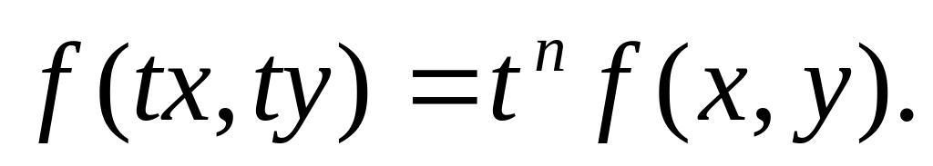 Определение. Функция f(x, y) называется однородной n – го измерения относительно своих аргументов х и у, если для любого значения параметра t (кроме нуля) выполняется тождество: