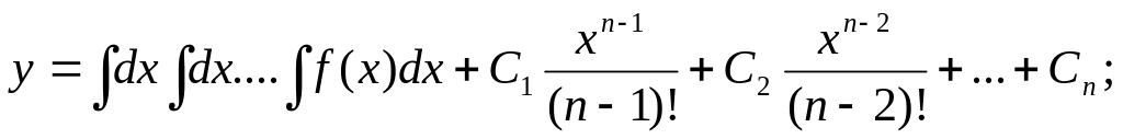 Если f(x) – функция непрерывная на некотором промежутке a < x < b, то решение может быть найдено последовательным интегрированием.