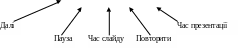 2.Настройка часу демонстрації. Для настройки часу презентації найкраще користуватися спеціальним для цього режимом перегляду, під час якого користувач матиме змогу чітко встановити час виведення на екран того чи іншого об’єкту (рис.2). Для вмикання цього режиму користуються командами: