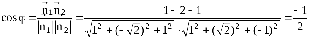 Решение. Координатами нормальных векторов плоскостей 1 и 2 будут коэффициенты при х, у и z: