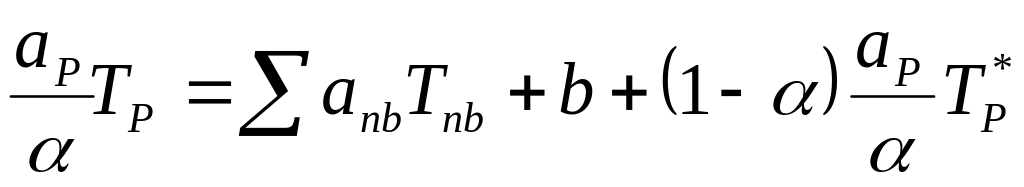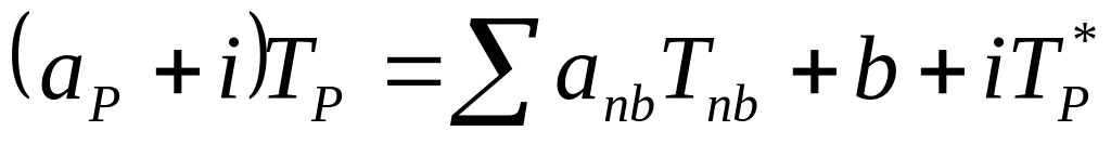 Иногда решение стационарных задач получают, используя дискретные аналоги соответствующей нестационарной задачи. Таким образом, шаги по времени становятся итерациями и старые значения Т0Р представляют просто значения Т*Р с предыдущей итерации. В этом смысле член a0РТ0Р имеет то же значение, что и член iT*Р в (4.16). Таким образом, инерция является аналогом коэффициента a0Р в нестационарной задаче. Такая аналогия предлагает один из способов определения приемлемого значения i.