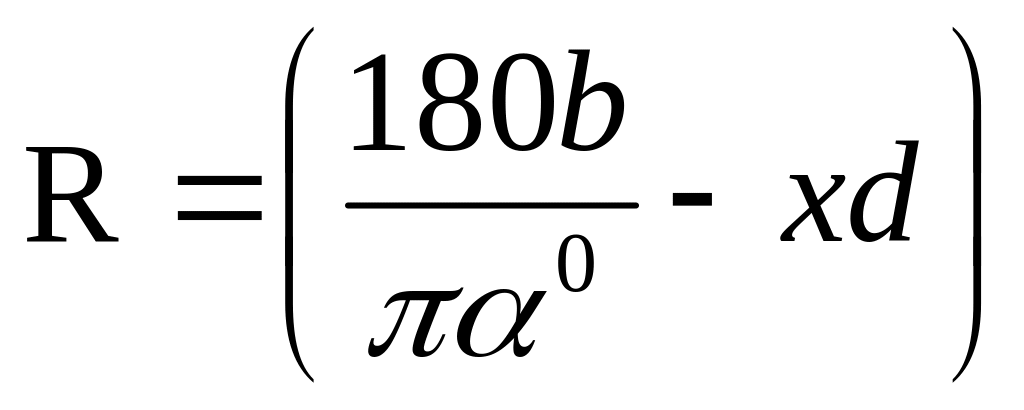 Перед расчётом калибровки валков необходимо определить величины радиусов мест изгиба по проходам, исходя из ширины криволинейных участков по формуле: