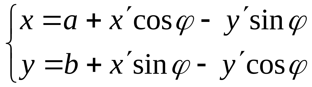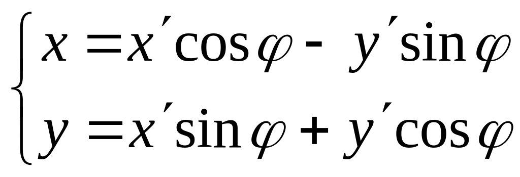 При повороте системы координат на угол (против часовой стрелки) старые координаты произвольной точки связаны с новыми ее координатами соотношениями: