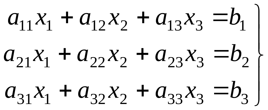 Для системы трех линейных уравнений с тремя неизвестными