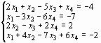 M=[2 1 -5 1; 1 -3 0 -6; 0 2 -1 2; 1 4 -7 6] M =