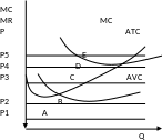 - В точке А – фирма не производит, т.к. Р1 < AVC, поэтому и предложение = 0.