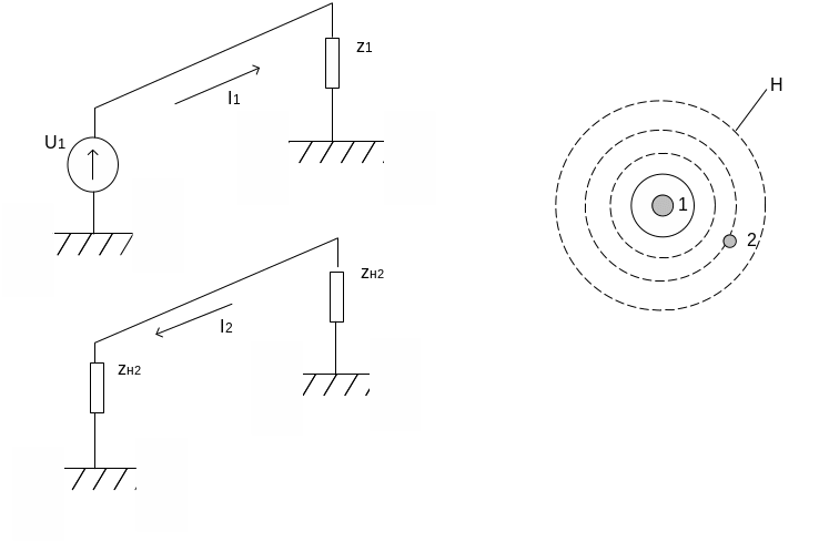 Где 1- влияющий проводник, 2- проводник, подверженный влиянию.
