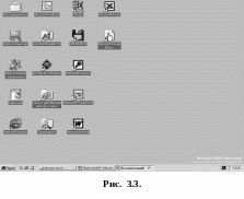 Итак, все пустое пространство на экране – это и есть Рабочий стол. На поверхности рабочего стола можно видеть различные картинки, называемые значками (жарг.: иконки от слова icon, рис. 3.3). В нижней части Рабочего стола располагается полоса, которая носит название Панель задач. Каждый значок на поверхности Рабочего стола означает определенный объект. Объектом может быть программа, картинка, скрытое окно и т. д.