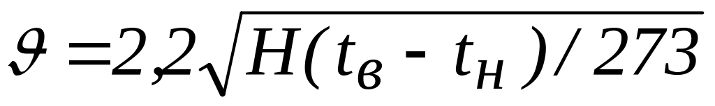 Скорость движения воздуха в канале зависит от высоты канала и разности температур и определяется по таблицам или по формуле