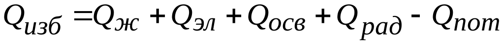 Для поддержания температуры воздуха на заданном уровне воздухообмен (м3/ч) определяют, исходя из условия теплового баланса помещений