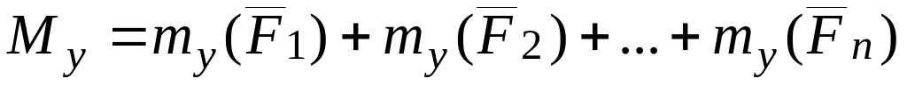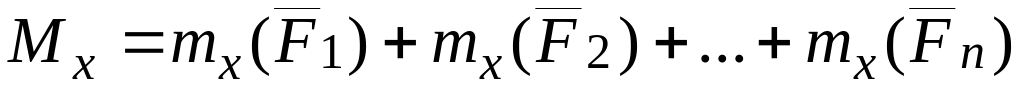 Главный момент относительно полюса в начале координат проектируем на каждую из осей координат: