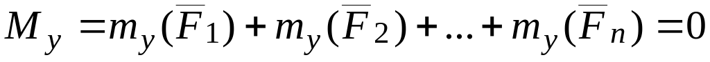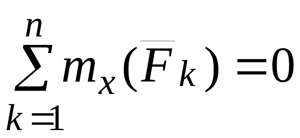 Для того, чтобы твердое тело под действием произвольной системы сил находилось в равновесии необходимо и достаточно, чтобы сумма проекций всех сил на каждую из осей координат и сумма моментов всех сил относительно каждой из осей координат равнялась нулю, то есть чтобы выполнялись шесть уравнений статики: