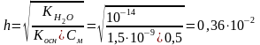 Степень гидролиза вычисляем по формуле:
