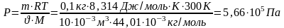 Т = 300 К; М = 44,0110-3 кг/моль) и подставим их в уравнение Менделеева-Клапейрона