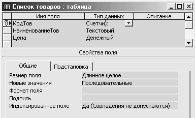 Основной и наиболее универсальный путь создания таблицы - использование режима конструктора. Для создания таблицы в этом режиме необходимо определить поля таблицы. Каждое поле характеризуется именем, типом данных и свойствами. Имя поля должно носить смысловой характер, в имя поля не следует включать специальные символы.