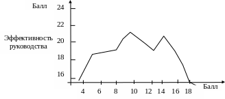 Оценка эффективности производилась по специальной шкале. Высокая эффективность руководства соответствует двум уровням проявления общительности руководителей: 8–10 и 14–15 баллам общительности. Этим уровням отвечает высокая производственная эффективность. Примерно одинаково низкие показатели эффективности руководства имеют место в группах «замкнутых» (до 4 баллов) и «высокообщительных» (свыше 16 баллов общительности).
