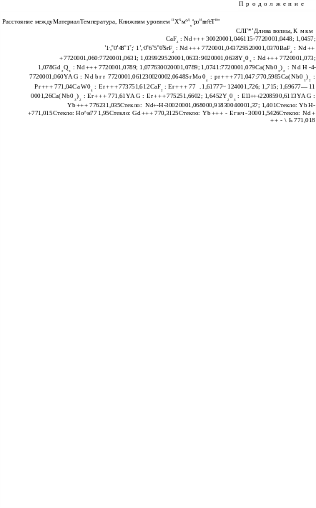 Существует большое количество лазерных материалов, подобных рубину (табл. 1 и 2). Это прежде всего стекло, в которое введены атомы неодима (Nd). С успехом применяется для создания лазера флюорит кальция (CaF2), в который введены атомы диспрозия или самария (Sm) и др. Все эти вещества — твердые тела, рабочими в них являются атомы ных примесей, уровни к-рых используются для возбуждения генерации за счет накачки лампой-вспышкой. Разные материалы дают световое излучение с различной длиной волны К. Так, рубин излучает красный свет с А ^ 0,7 мкм, неодимовое стекло дает инфракрасное излучение с длиной волны К — = 1,06 мкм, а флюорит кальция с диспрозием генерирует еще более длинную волну К ^ 2,5 мкм. Неодимовое стекло обладает некрым преимуществом перед рубином. Изготовить однородный стержень из неодимового стекла для Л. проще, чем из рубина. Его