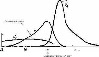 Рис, 6.29. Сечение поглощения о*й, сечетше вынужденного излучения ос. (син-глет-синглетного перехода) и сечение поглощения От (триплет-триплетного перехода) для раствора родамина GG в этиловом спирте.