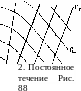 Доказательство этого утверждения очень просто. Пусть интересующая нас область 1 плоскости х, t граничит справа с областью 2 постоянного течения (рис. 88). В последней, очевидно, постоянны оба инварианта /+ и /_, а оба семейства характеристик прямолинейны. Граница между обеими областями есть одна из характеристик С+, и линии С+ одной области не переходят в другую область. Характеристики же С_ непрерывно продол