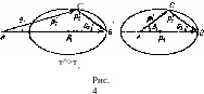 При ©j = 0 вектор р| совпадает с р^ так что расстояние АВ равно Ри Сравнивая pi с удвоенной большой полуосью эллипса, легко убедиться, что точка А лежит вне эллипса, если тх > т2 (рис. 4, а) и внутри него врш mi < т2 (рис. 4, б).