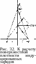 Поверхностную плотность индуцированных зарядов легко определить с помощью соотношения (1). Напряженность поля вблизи поверхности проводника направлена по нормали к ней. Очевидно, что в рассматриваемом случае поле обладает осевой симметрией: при вращении вокруг линии, соединяющей заряды д и — д, картина поля не меняется. Поэтому плотность заряда на поверхности зависит только от расстояния г от оси симметрии: а = о(г). Простой расчет, идея которого понятна из рис. 32, приводит к результату (в единицах СИ):