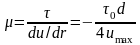 Під в’язкістю розуміють властивість рідини чинити опір деформації зрушення. Характеризують її константою μ, званою динамічною (абсолютною) в’язкістю і визначуваною як відношення напруги зрушення τ між двома сусідніми шарами рідини до градієнта швидкості зрушення du/dr у напрямі, перпендикулярному напряму течії. Для ламинарного потоку (рис. 6.12):
