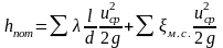 Коефіцієнт місцевого опору залежить від його форми, шорсткості поверхні, ступеня відкриття запірного пристрою, числа Рейнольдса та ін. Коефіцієнт зазвичай відносять до швидкості потоку перед місцевими опороми. На підставі принципу накладення загальні втрати для трубопроводу при послідовному розташуванні всіх видів опору можна представити у вигляді: