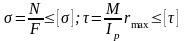 F, Ip, rmax - соответственно площадь, полярный момент инерции, радиус инерции сечения.