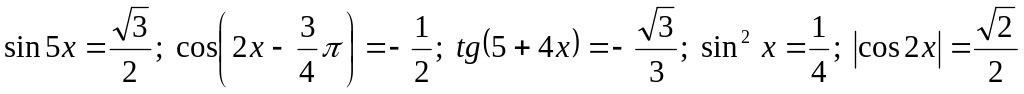 Аналогічні завдання можуть служити засобом контролю за сформованістю в умінь, що вчаться, вирішувати найпростіші тригонометричні рівняння.