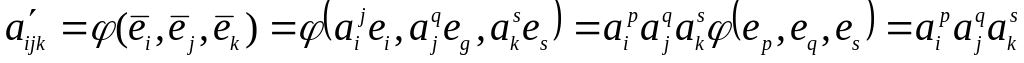 Означення: Сукупність чисел називається тензором p-раз коваріантним та q-раз контраваріантним, якщо при переході від старого базису до нового ця сукупність змінюється за законом