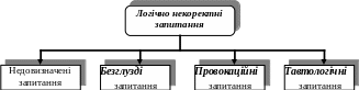 Запитання не по суті теми за формою створюють ілюзію прямого чи непрямого відношення до обговорюваної теми. Однак не тільки за змістом (що є головним), а власне і за своєю сутністю такі запитання не мають відношення до обговорюваної конкретної проблеми. Такі запитання звичайно ставлять у "гарячих дискусіях", коли хочуть збити ритм обговорення конкретної теми і цим самим одержати перевагу перед опонентом. Наприклад: "Ваше відношення до дефектології?" А тим часом дискусія була присвячена дефектоскопії і, природно, вона ніякого відношення не має до дефектології. Остання вивчає закономірності й особливості розвитку дітей з фізичними і психічними недоліками і запитання організації їхнього навчання і виховання. У той же час дефектоскопія являє собою сукупність методів (магнітний, рентгенівський, ультразвуковий і т.д.), застосовуваних для виявлення невидимих оком дефектів у матеріалах, виробах; вона здійснюється за допомогою спеціальних приладів – дефектоскопів.