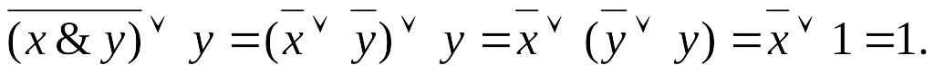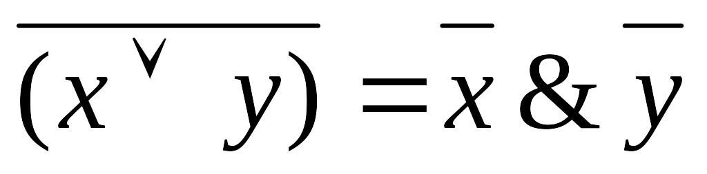 Следующие равносильности могут быть проверены прямым сравнением значений функций в левой и правой части соотношения на всевозможных наборах аргументов.