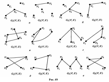 айдите объединение, пересечение и дополнение графов G1 и G2 (рис. 49).