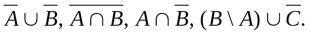 В качестве универсального множества данной задачи зафиксируем U={p,q,r,s,t,u,v,w}. Пусть А={p,q,r,s}, В={r,t,v}, С={p,s,t,u}. Найдите элементы следующих множеств: