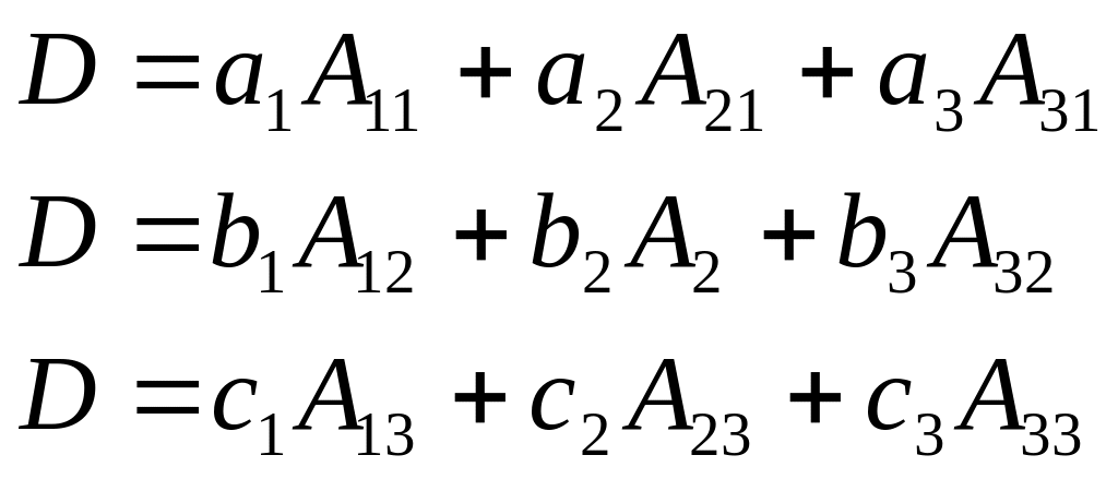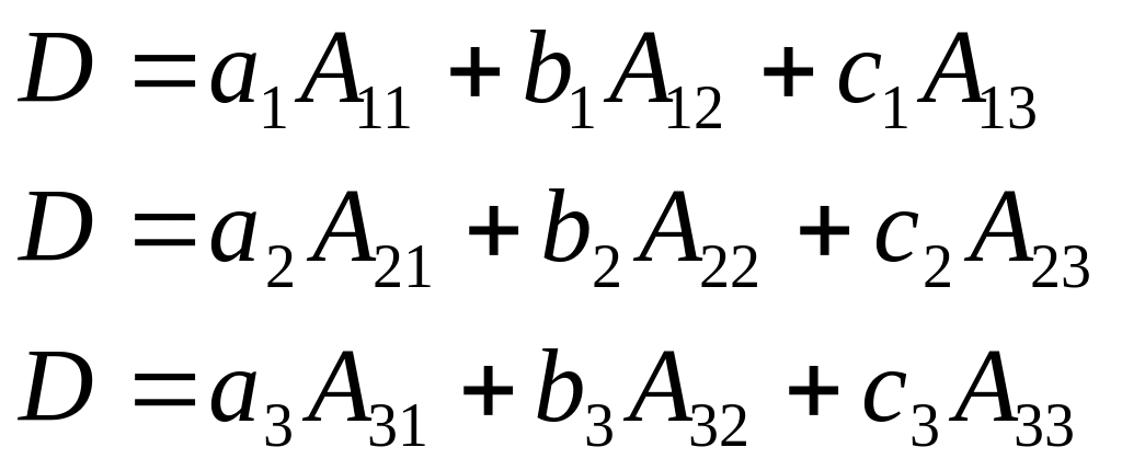 Т. об., для определителя III-го порядка справедливы 6 разложений :