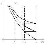 На рисунке 2.12 приведены примерные характеристики w=f(M) для прямого пуска 1, при пуске через сопротивления и дроссели 2 и 3 - при автотрансформаторном пуске.