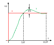 Для замкнутых контуров описываемых уравнением 2-го порядка оптимальный переходной процесс при ступенчатом входном сигнале рис..