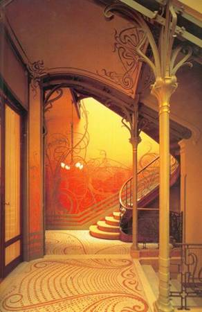 Внутренняя отделка интерьеров модерна отличается разнообразием, но всегда выражает стремление создать цельное гармоничное пространство, поэтому архитектор проектирует для этих интерьеров все элементы, вплоть до дверных ручек и посуды.