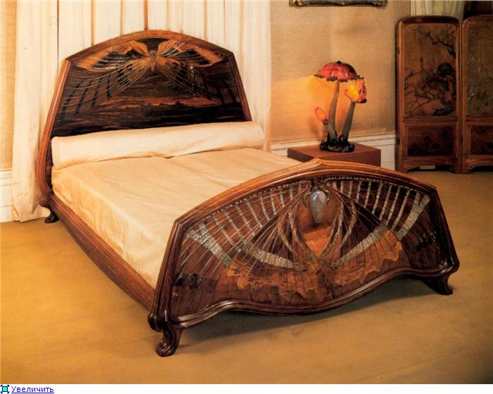 Стиль возник как реакция на увлечение историческими стилями. Задача нового стиля (модерн – современный) - отказаться от исторических цитат и создать новый стиль на основе природных мотивов. Излюбленным декоративным мотивом стиля стал так называемый «удар бича» - причудливо изогнутая линия, подобная изгибу хлыста в момент удара. Любимыми темами модерна были также цветы (ирисы, лилии, чертополох), бабочки, стрекозы, мотивы ветра, волны. Цветовая гамма стиля неяркая, приглушенная. Общее настроение декаданса, печали. Отсюда текучие, оплывающие формы.