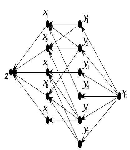 необхідна. Нехай існує паросполучення , що відображає всю множину в . Тому що ніякі дуги з не суміжні, то нерівність (11.1) повинна виконуватися для кожного .