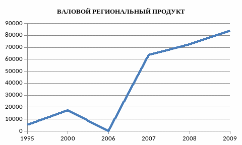 Замедление и сокращение темпов роста физических объемов практически во всех видах деятельности, а также рост промежуточного потребления привел к снижению валового регионального продукта в первом полугодии 2009 года на 5,6% к аналогичному периоду 2008 года (в России ВВП за этот период снизился на 10,4%). Предварительный прогноз индекса объема ВРП в 2009 году составляет 97,2% к уровню 2008 года, с долей выпуска промышленных товаров более 50%.
