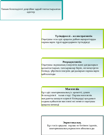 - •Оқушылар таным-белсенділігі деңгейіне қарай топтастырылған оқыту әдістері.
