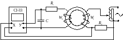 5.5 Поворотом ручки ЛАТРа у напрямі за годинниковою стрілкою подайте невелику напругу на стенд. При цьому якщо випадково регулятори підсилювачів "Х" та "У" осцилографа були встановлені вдало, то на екрані з’явиться фігура петлі гістерезису або еліпса. Все буде залежати від того, яка напруга була подана на стенд від ЛАТРа.
