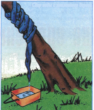 Когда идет дождь, обвяжите тканью дерево. Вода, стекающая вдоль ствола, впитывается тканью и стекает, капая в подставленную внизу емкость.